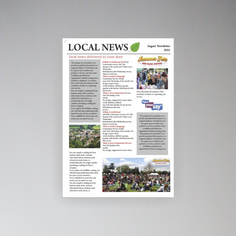 We regularly print A4 newsletters for: