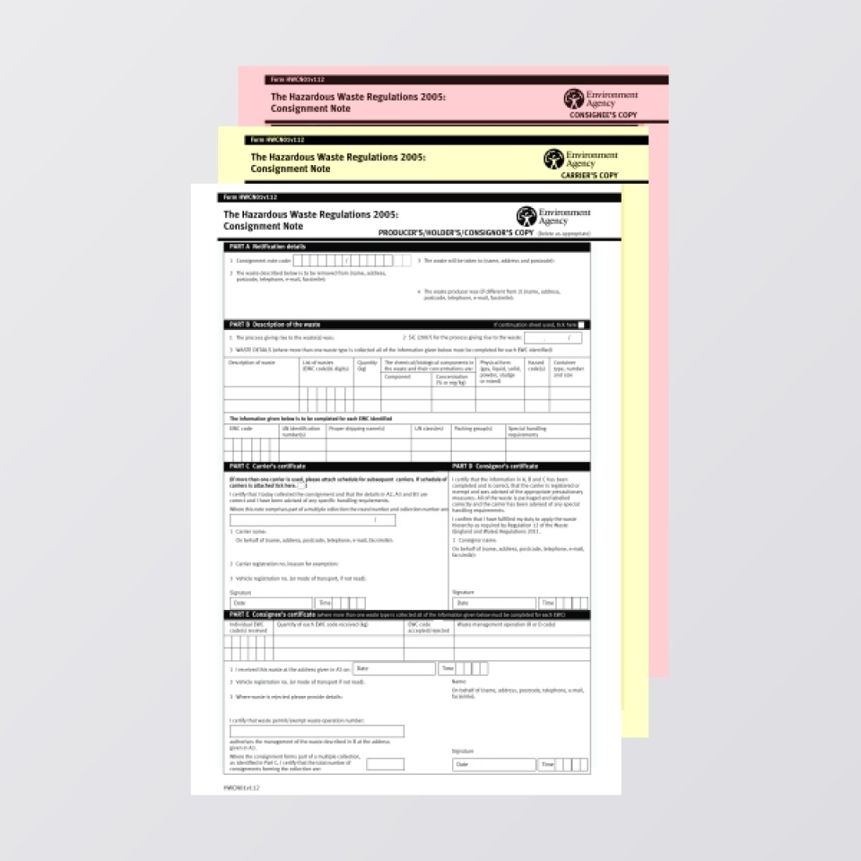 Get in touch!Hazardous Waste Consignment Notes