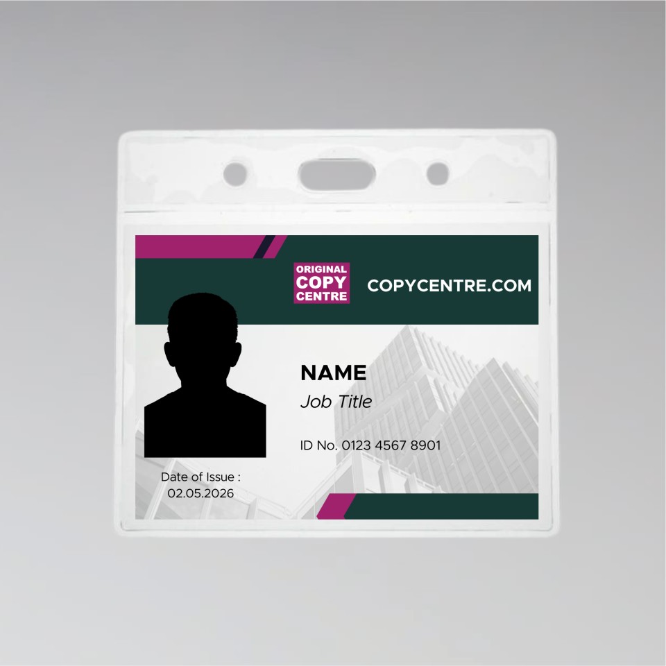 - Badge Holders: We print the cards and supply badge holders, for you to attach your own lanyards or clips to.