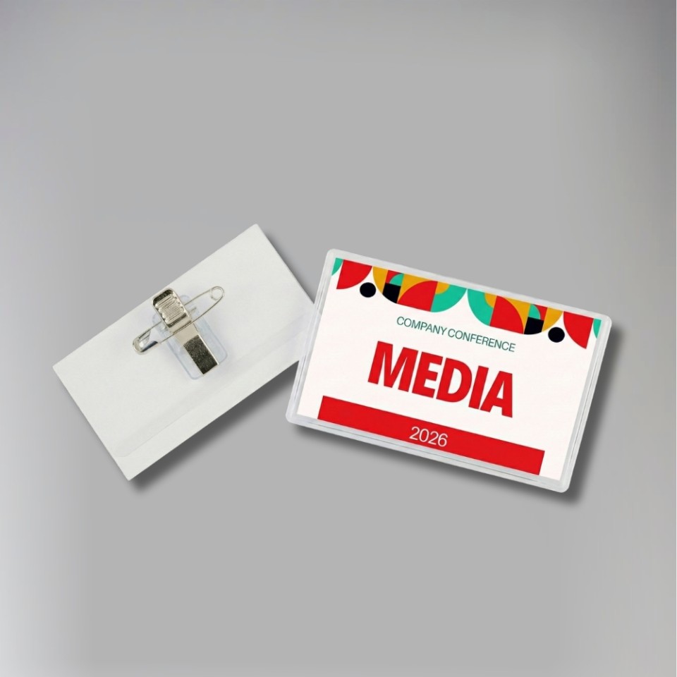 - Badge Holders: We print the cards and supply badge holders, for you to attach your own lanyards or clips to.